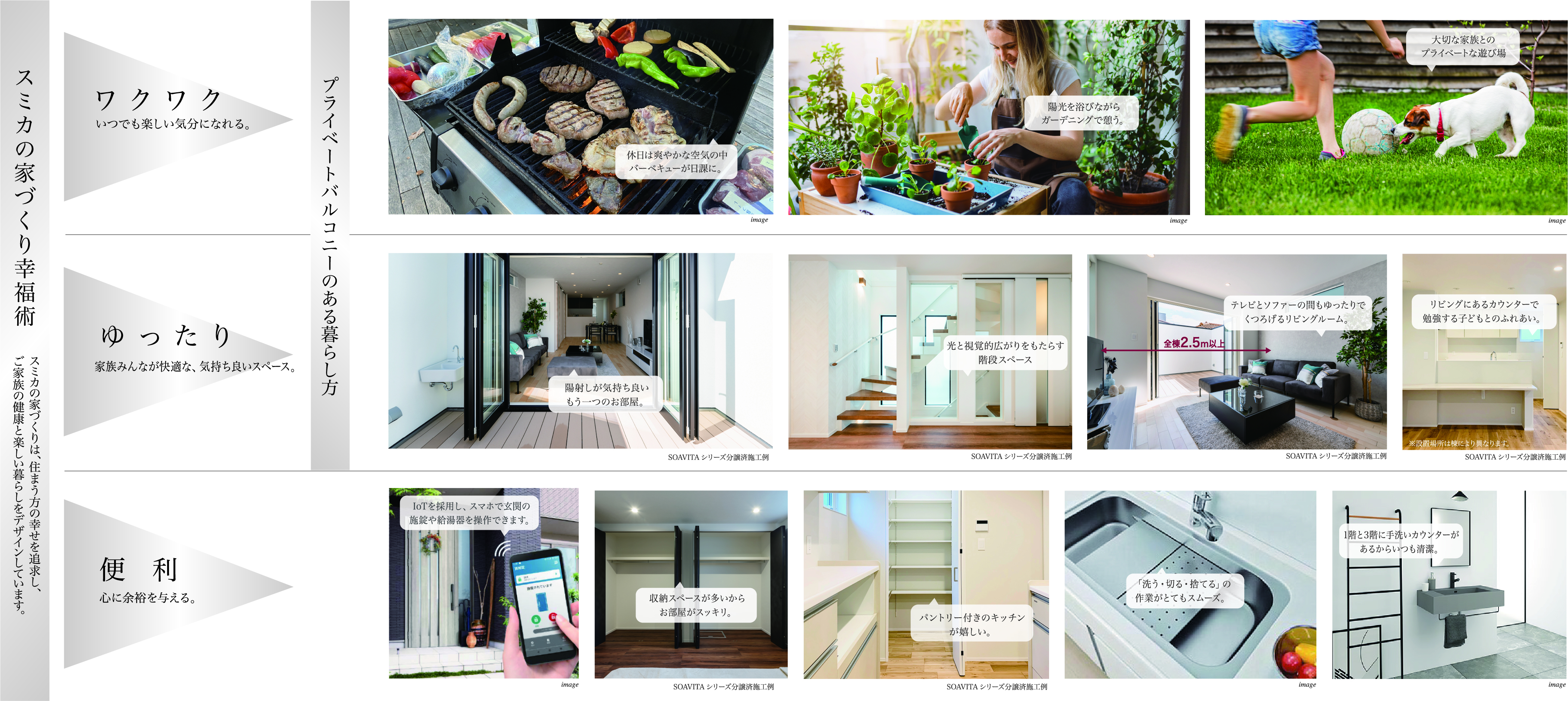 リビングから広がるウッドデッキ付のプライベートバルコニーは心のオアシス。 外と繋がる開放的で心地よい空間は、 豊かな暮らしをつくりだし、ゆったりとしたお家時間を演出してくれます。