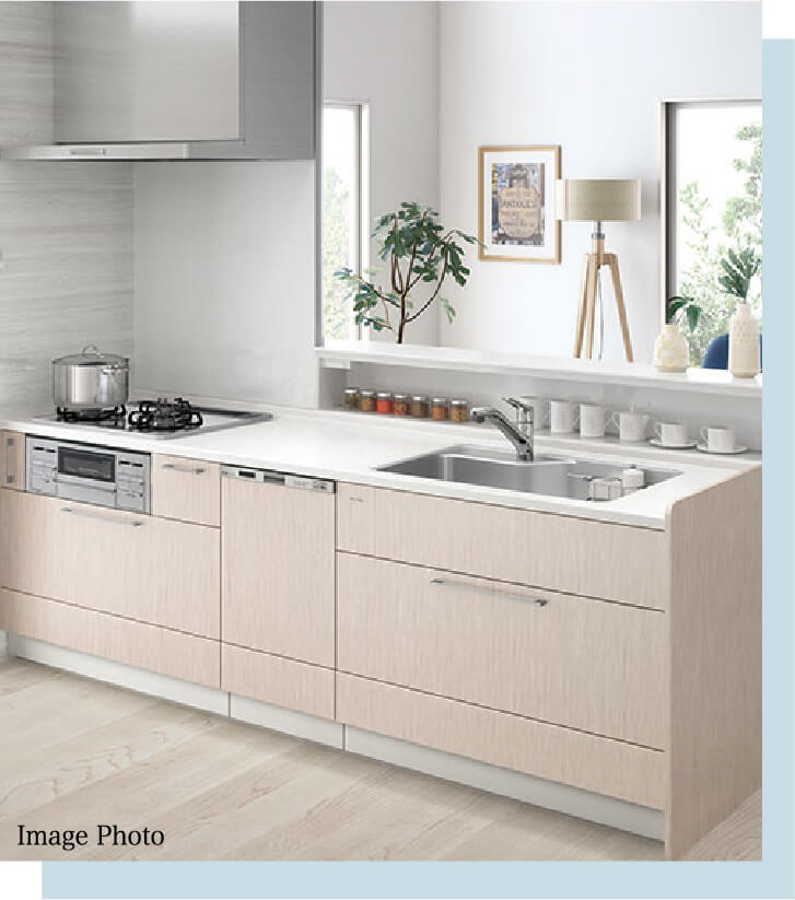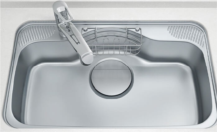 大きな鍋も洗える奥行ワイドなサイズで、水はね音などが抑えられるステンレス製。業界トップレベルのステンレス製静音シンクで、勢いよく水やお湯を出しても音がでにくいので安心。