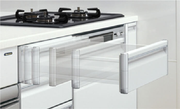手洗いにはマネできない高温洗浄で、ガンコな油汚れもスッキリ落し、キレイに洗い上げます。洗浄と乾燥のW除菌で食器はいつも清潔に。予約タイマー付で、奥様の味方。