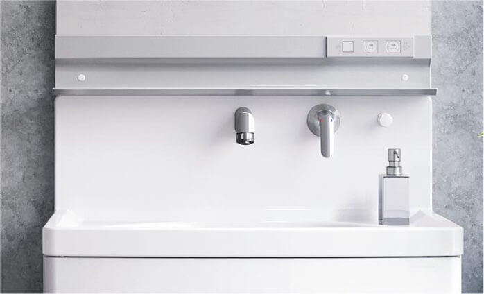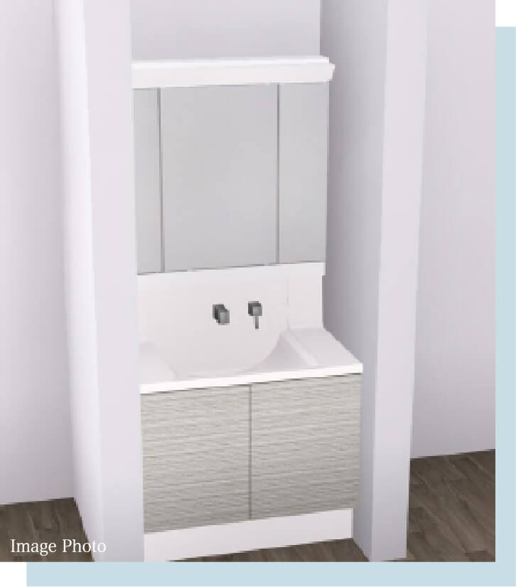 汚れに強く、つややかな美しさを持つ高級感のある造りが特長の洗面化粧台。