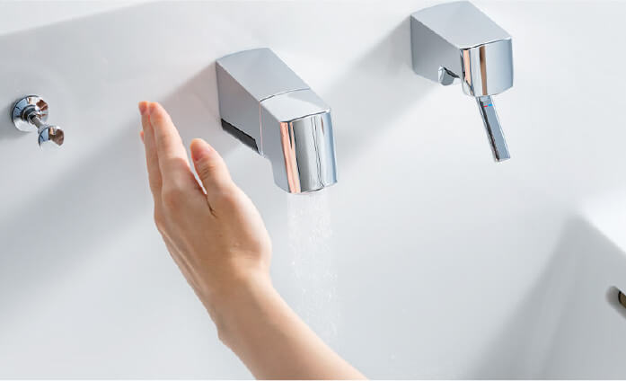 シンプル&スタイリッシュなデザインのシャワー水栓。エコタイプを採用している為、簡単操作でお湯や水のムダづかいをカットします。