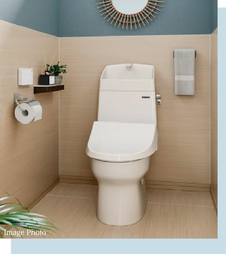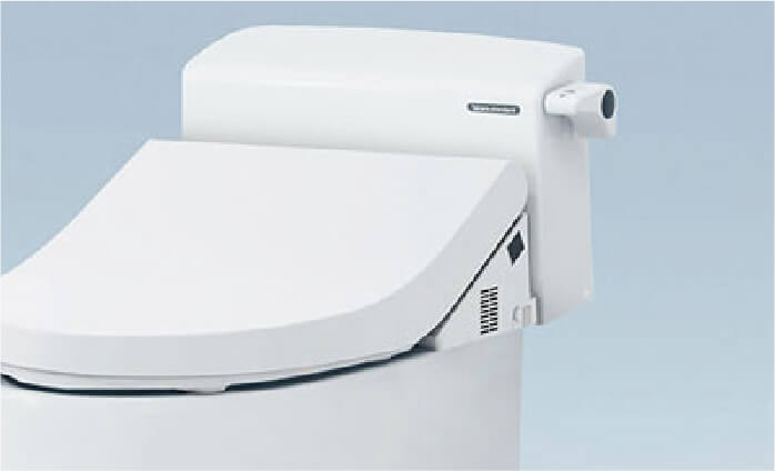 温水洗浄便座は、“エアイン洗浄”“オート脱臭”“2段ノズル”の快適機能が搭載されています。