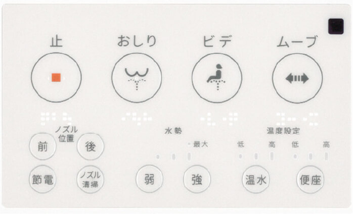 ボタンが大きく使いやすいユニバーサルデザインのリモコンで全ての洗浄操作が可能です。