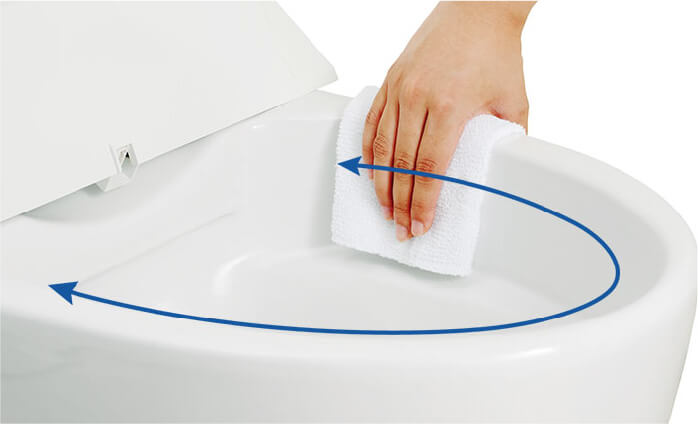 左右からの水流で効果的に洗浄。こびりつきや洗い残しがほとんどなく便器ボウルが清潔です。