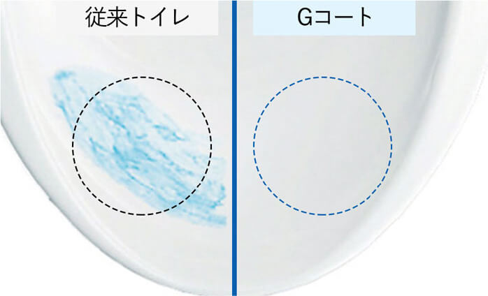 便器の表面を汚れからガードする、ガラスのようななめらかな透明層。汚れがこびりつきにくく、汚れも簡単に落とせます。