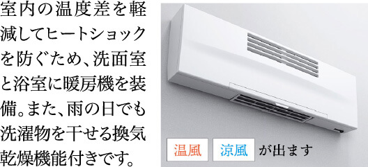雨天や花粉の多い季節も、浴室で衣類乾燥できます。冬の予備暖房はもちろん、湿気・カビ対策。オールシーズン大活躍の浴室暖房乾燥機。