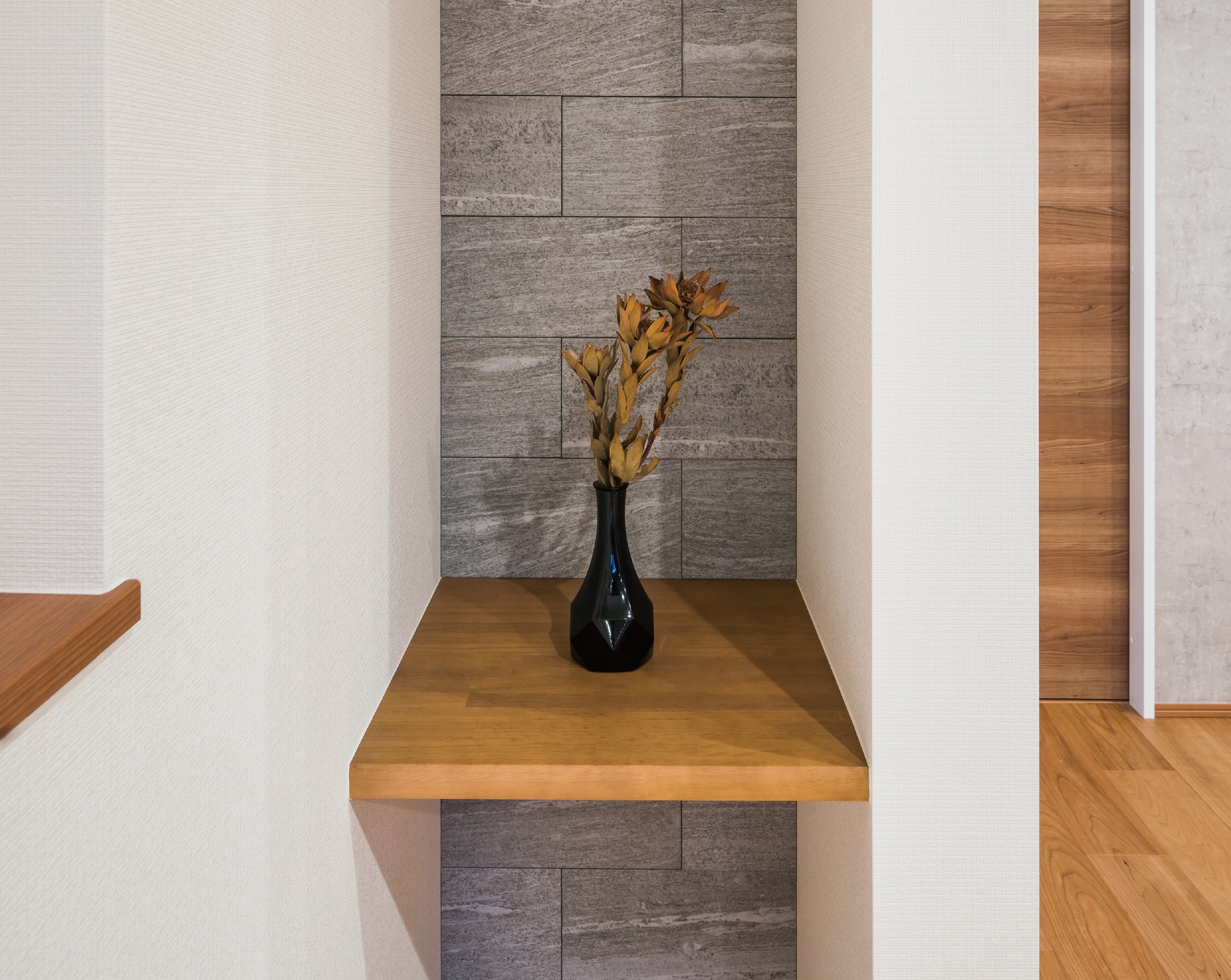 邸内の随所にはニッチやカウンターを配置。お気に入りの小物や家族の写真などを自在にディスプレイすることができます。空間に華やぎとオリジナリティを添え、自分たちだけの特別な住まいを実現できます。