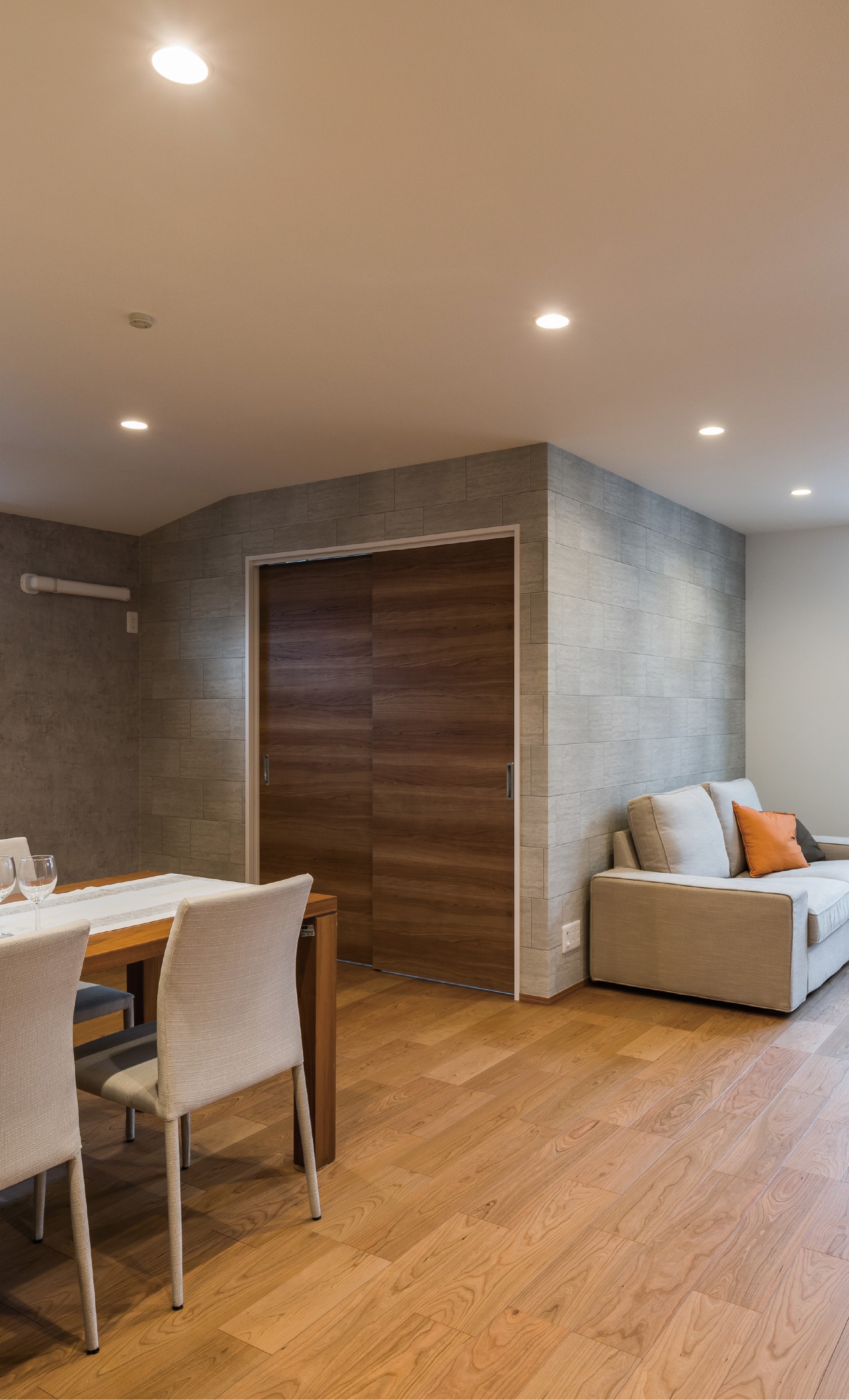 空間にメリハリを与えるアクセントクロスとアクセントタイルを使用し、視覚的に住まう人の感性と好奇心を刺激してくれます。