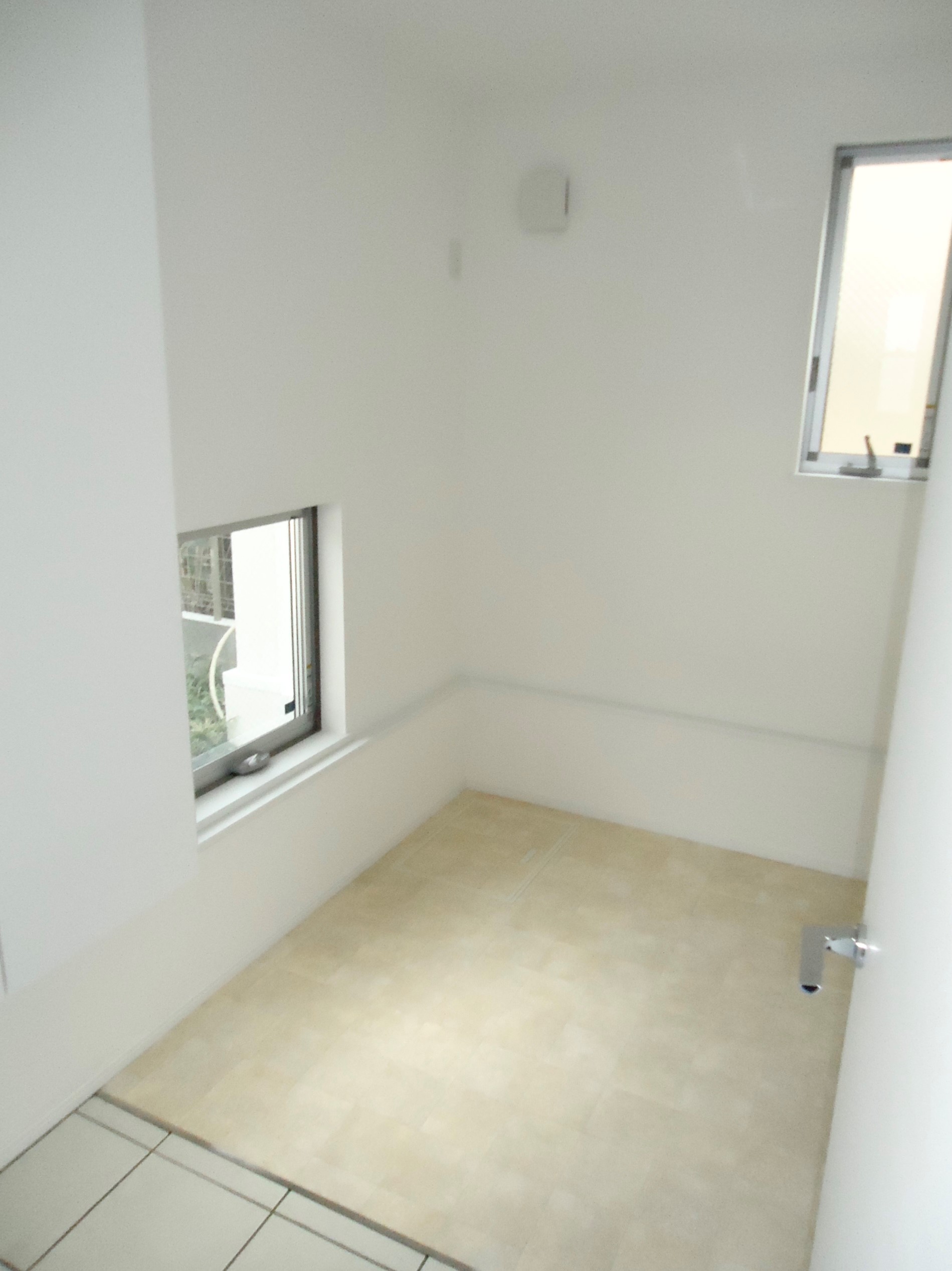 窓付きのペットルームは、滑りにくく、お掃除もラクになる床タイルを採用しました。ペットと一緒に窓から外を眺めたり、帰宅時は可愛いペットが窓からお出迎え。