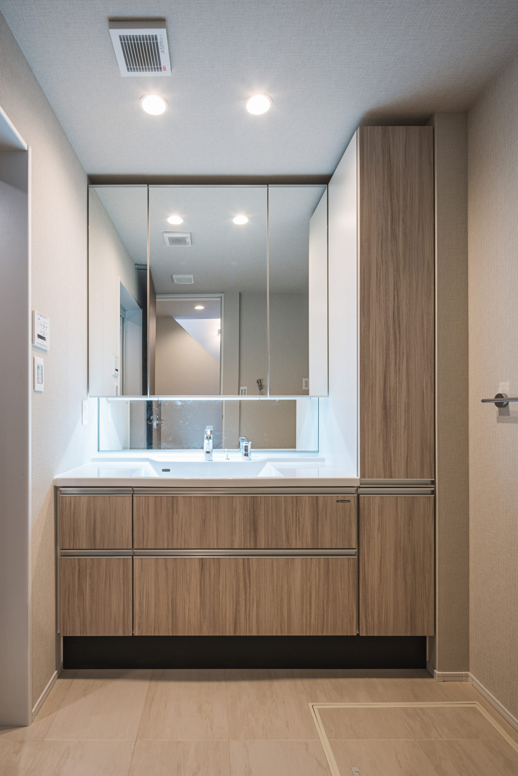 また、高気密・高断熱性能も重要な役割を果たします。断熱等性能等級5レベルの断熱材と樹脂サッシを採用し、外気温の影響を極力遮断する空間設計となっています。その結果、寒い脱衣室と暖かい浴室との間で起こるヒートショックリスクを低減し、季節を問わず穏やかな温熱環境の住まいを実現します。