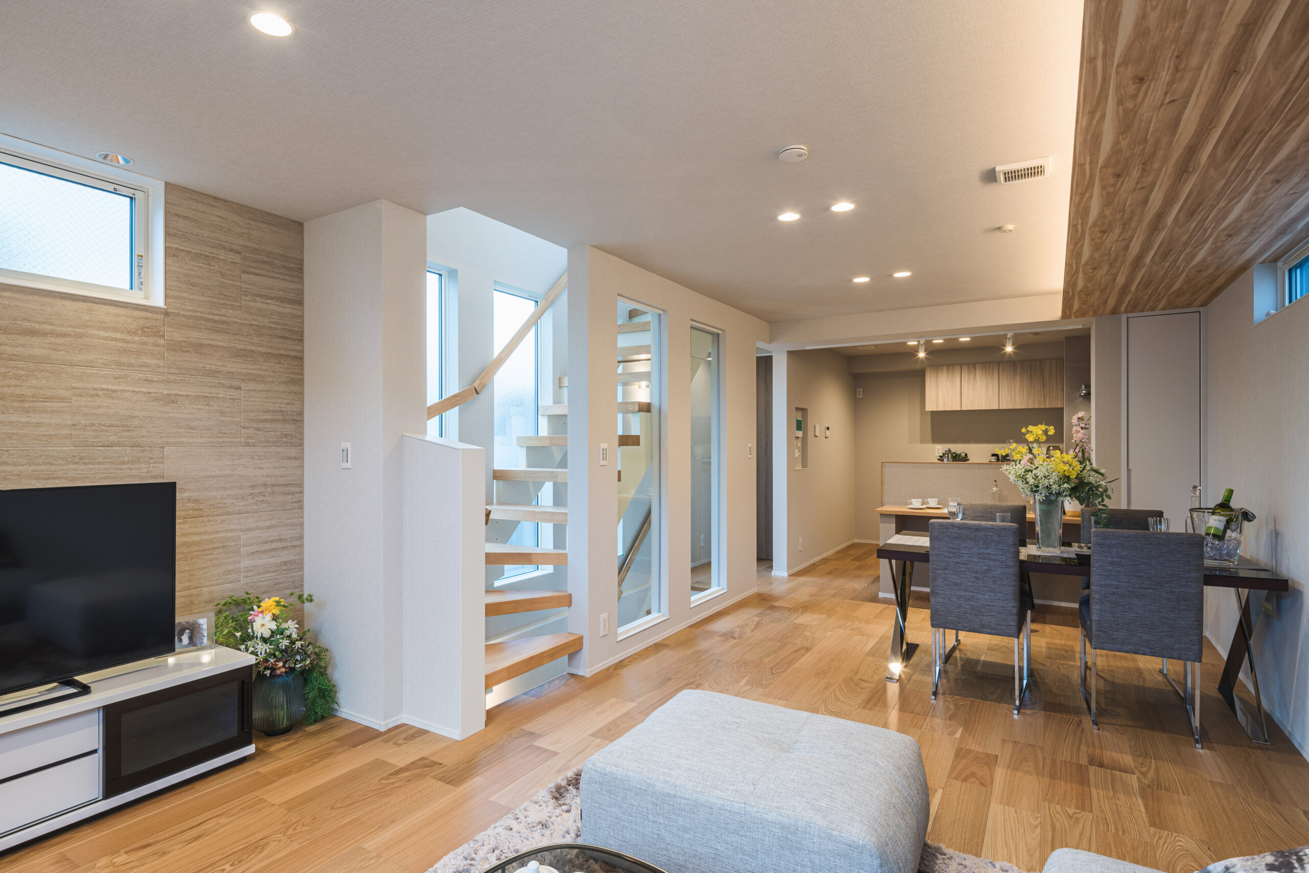 最大の特長のひとつが、全館空調システムです。家全体を一元的に空調管理することで、リビングや寝室、洗面脱衣室はもちろん、トイレ・廊下まで同じような室温環境に保ちます。この「どこにいても温度差が少ない住まい」は、ヒートショックの原因となる急激な温度変化を大幅に抑え、身体への負担を軽減します。
