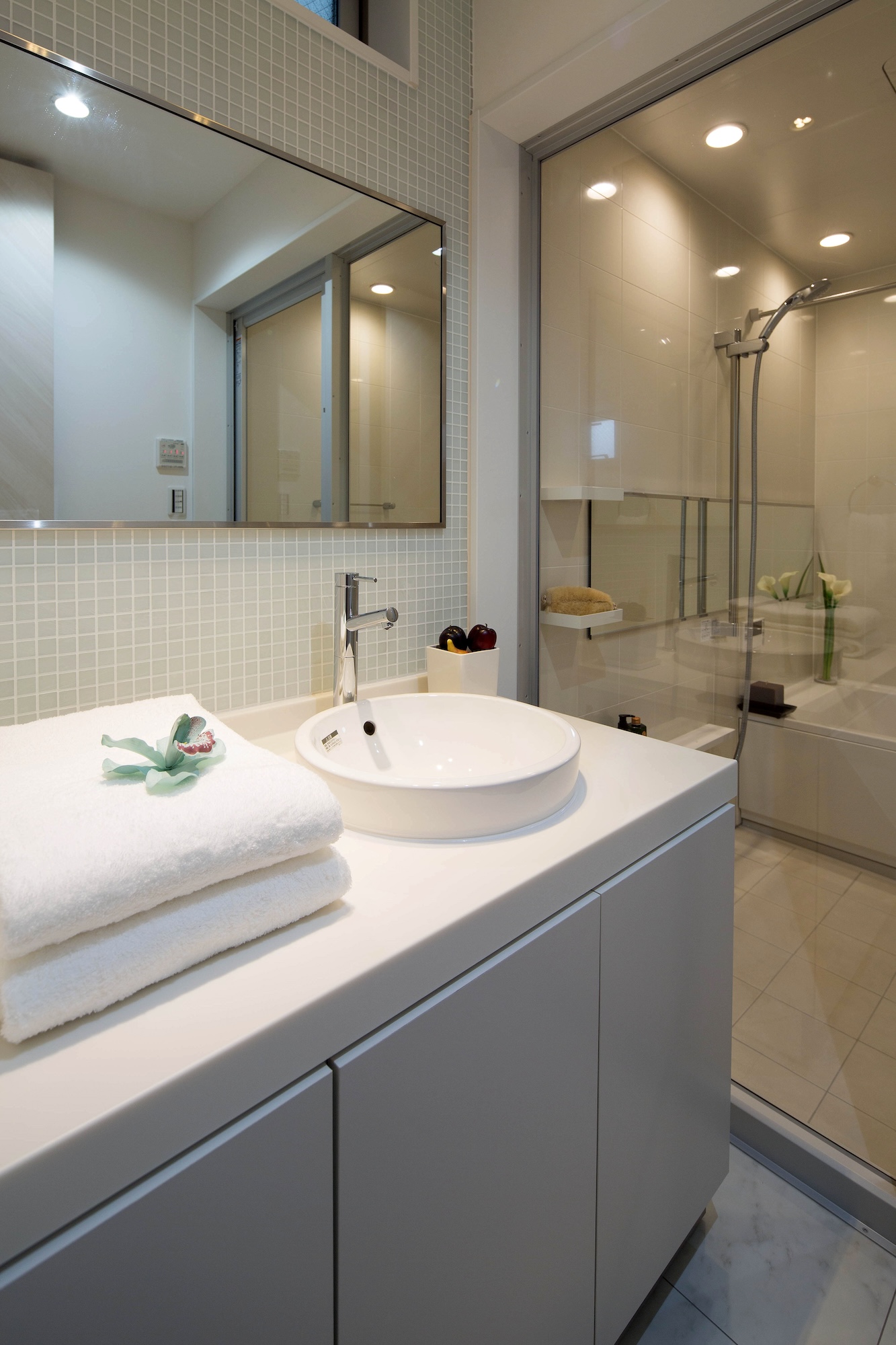 ガラス壁も相まって、上品で透明感のある優美な印象に。