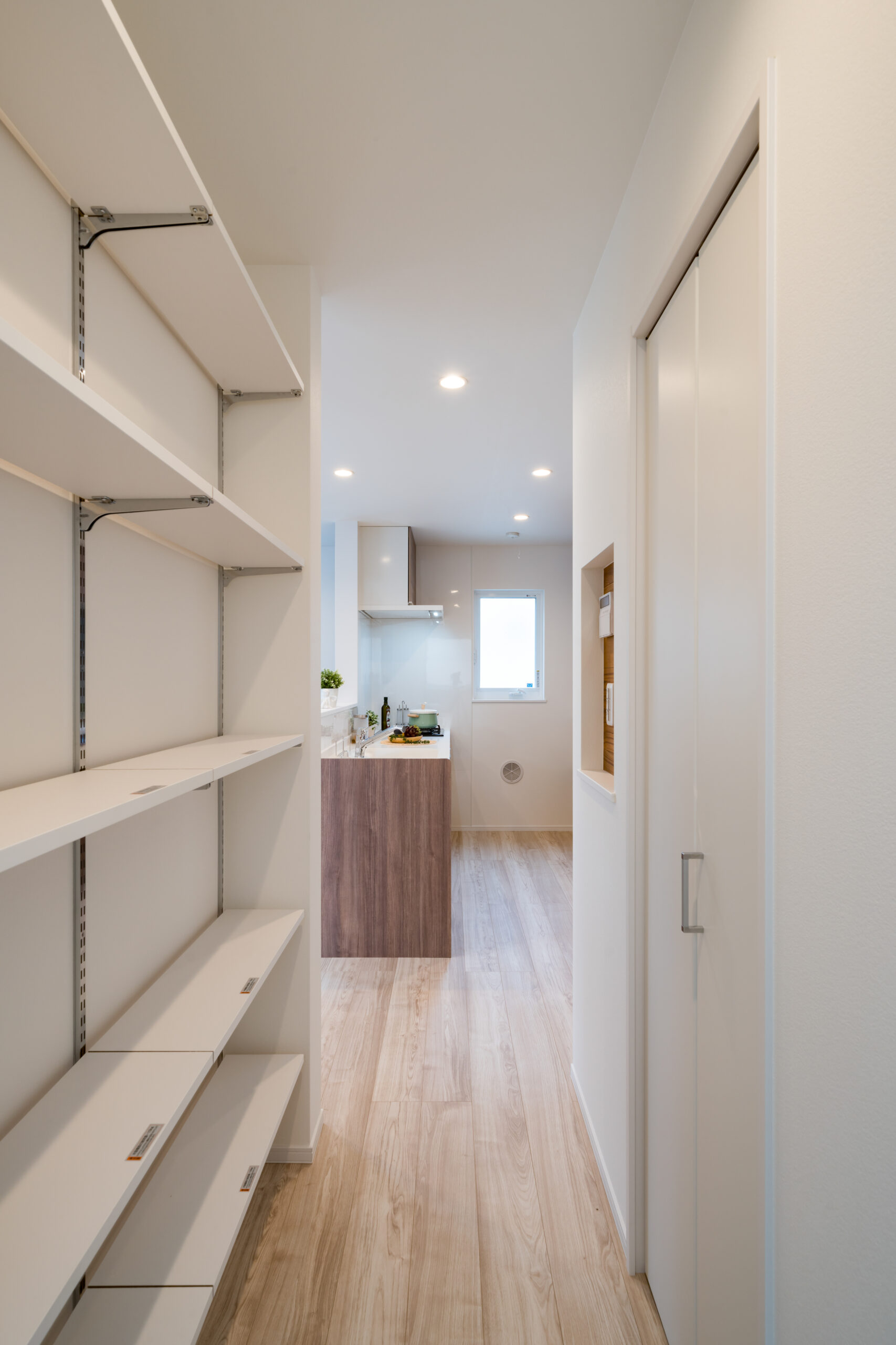 パントリーや書斎にもなる多機能収納をリビングに集約しました。家事動線を整えることで家族が集まり、暮らしにもゆとりが生まれます。