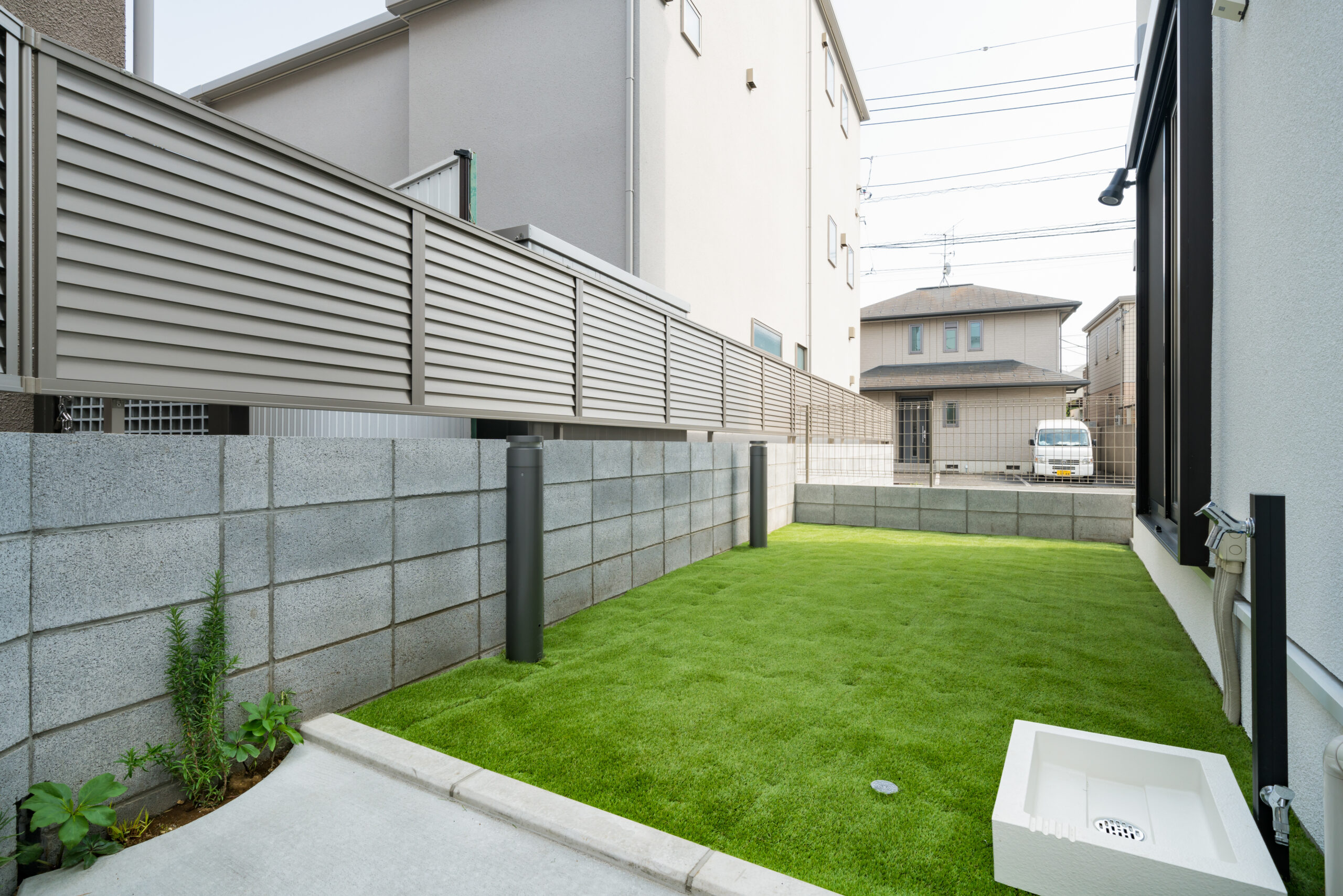 都心の分譲住宅では珍しい人工芝のあるお庭。お子様や愛犬と遊んだり、パターゴルフを愉しむことができます。