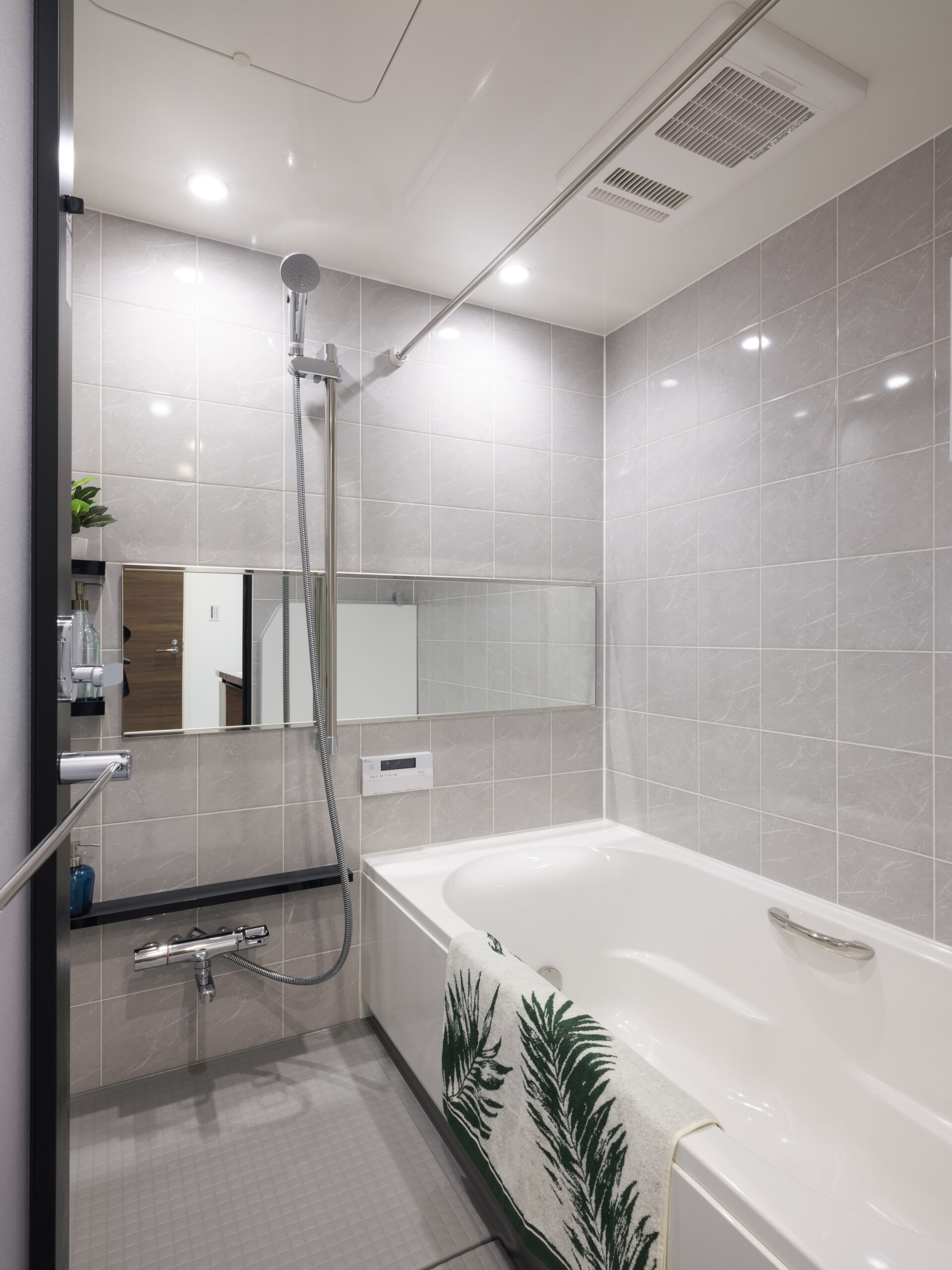 4面タイル張りの浴室です。高級感漂うハイクラスのバスルームで一日の疲れを癒します。