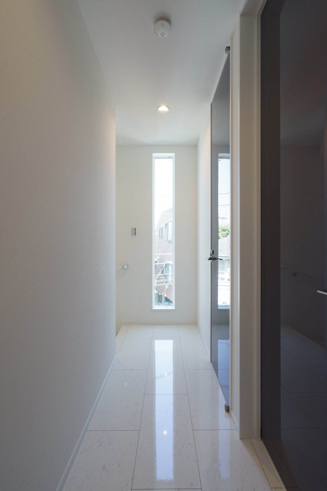 フィックス窓から差し込む陽射しと鏡面の床がラグジュアリーな空間を。