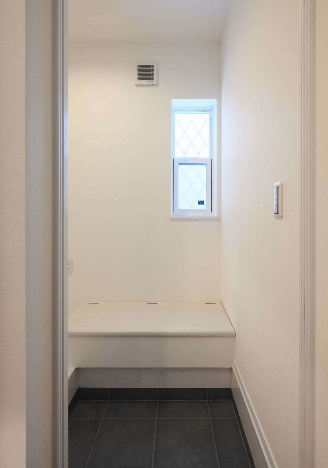 広々としたシューズインクローゼットの中にベンチを設けて快適さをプラス。