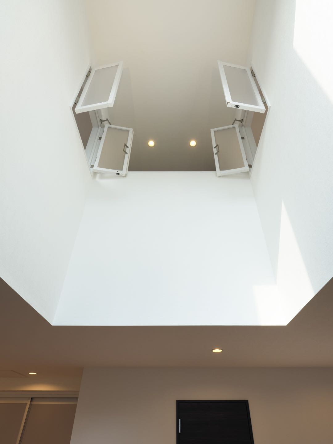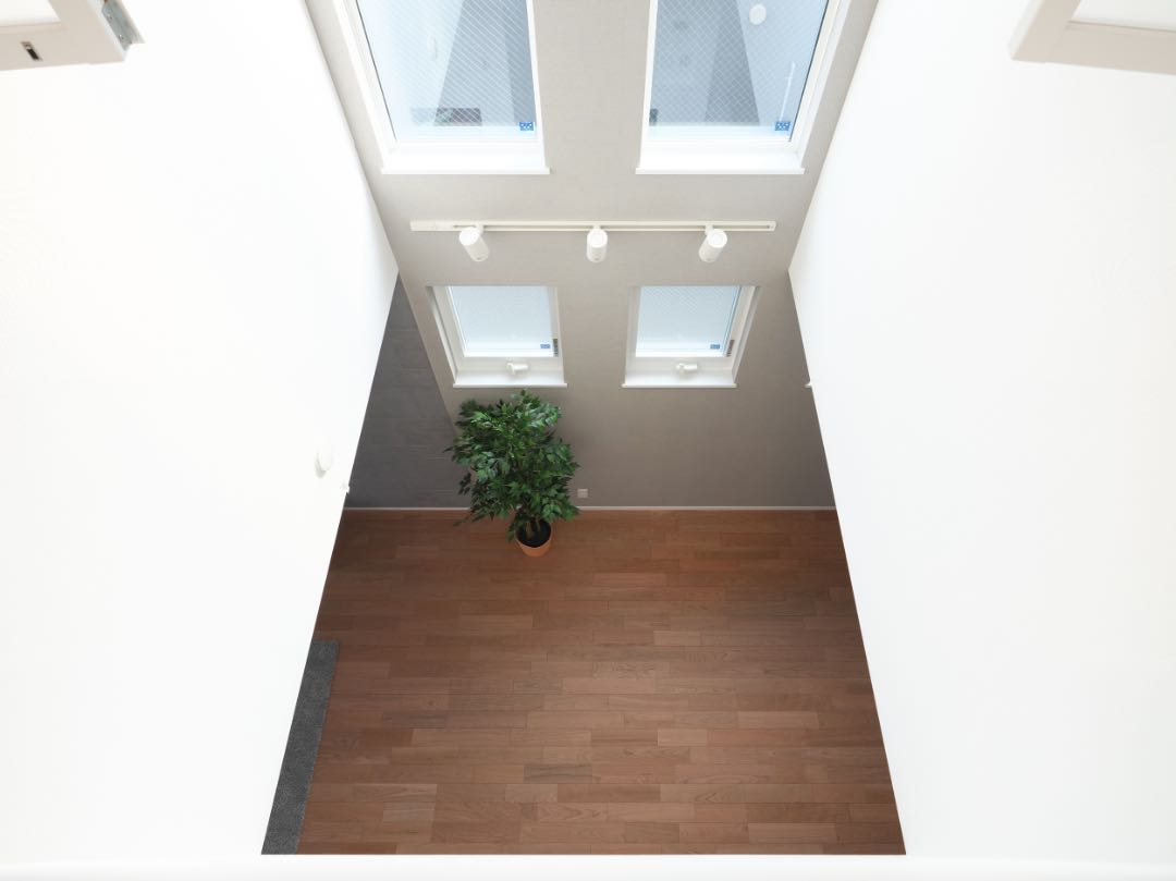 吹抜けの高窓と内窓で室内に陽光と風がコントラストし、リビングと3Fのフロア全体が明るく心地よく繋がり、気持ちよく過ごせます。