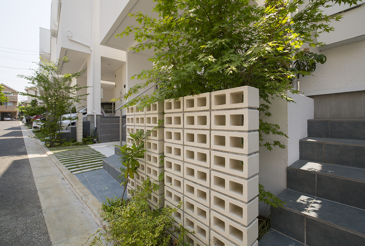 空洞レンガを採用。プライベートを守りつつ、意匠性と風通しの良さをデザインしました。